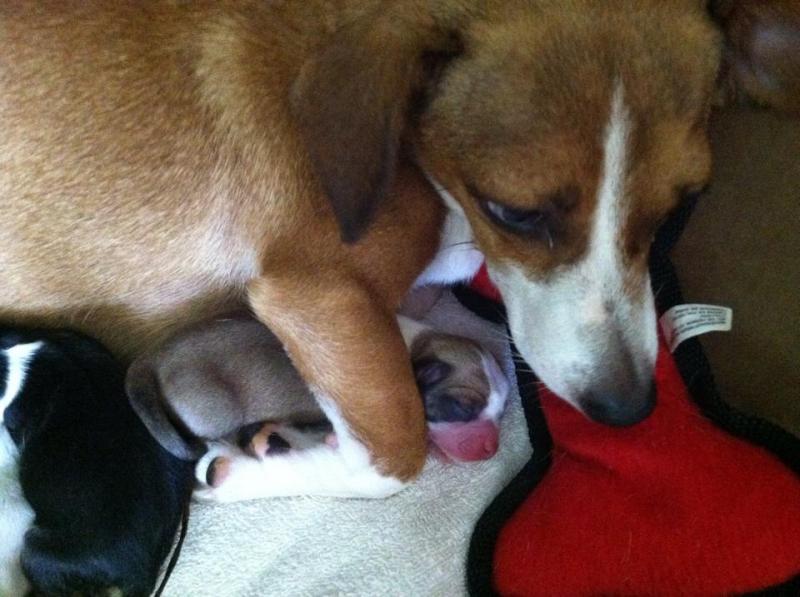 và xin mời xem vài hình ảnh của con chó nhà tui, tên là Baguette, vừa sanh ra mấy con chó con... Hy vọng quý vị sẽ có những giây phút thư giãn khi ngắm nhìn hình ảnh của những chó con dễ thương này...