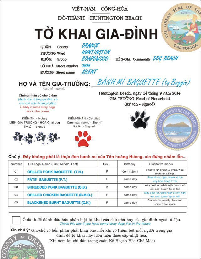 và đây là tờ khai gia đình của con chó nhà tui sau khi sanh xong...